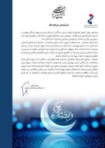 پیام تبریک مدیرعامل شرکت پتروشیمی مارون به مناسبت فرا رسیدن ماه مبارک رمضان